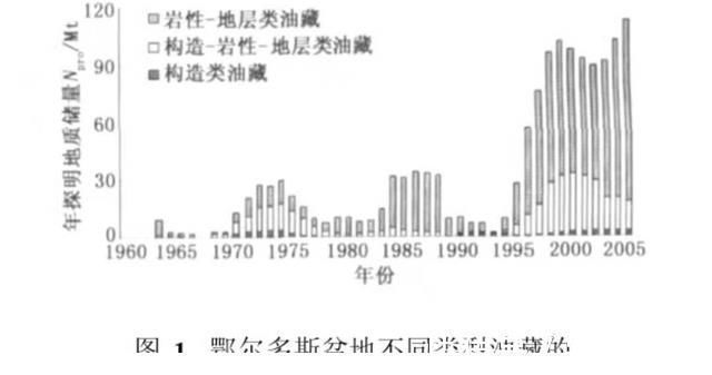 随着开采技术的不断更新发展,浅层油甚至是深层油都得到了极大的利用,据中国石化报2019年07月12日环球周刊推出的内容显示,截至2017年底,全球油田数量已经高达8411个,其中在产油田数量达到了2536个,而且这一数量还在不停上升,如下图我国鄂尔多斯盘地不同类型油藏类型的年探明储量。